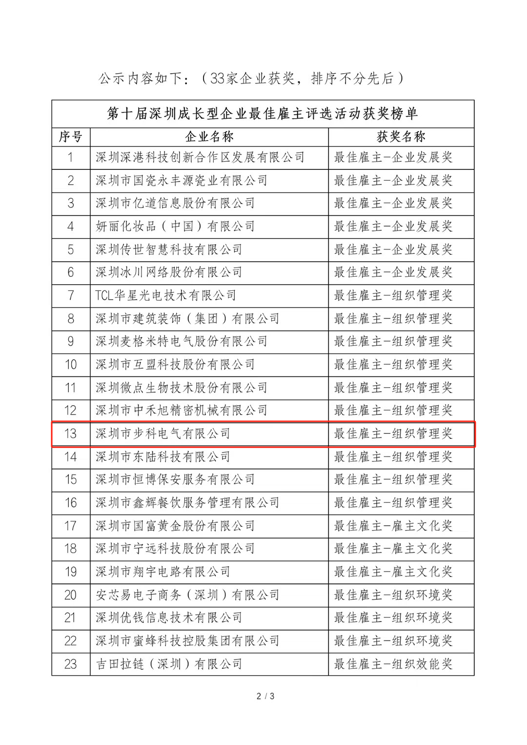 “第十届深圳成长型企业最佳雇主”